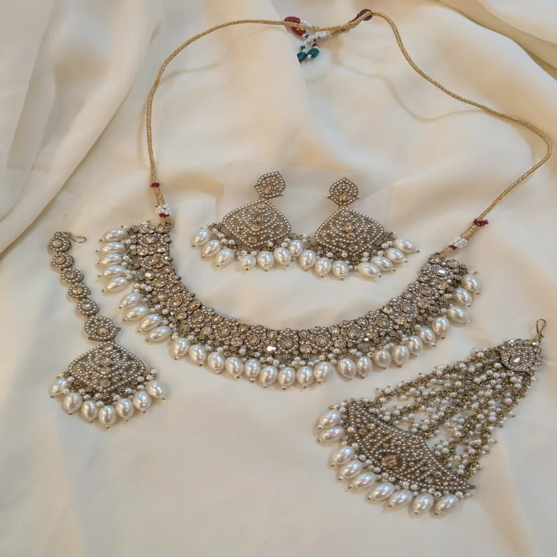 এই ফুল ব্রাইডাল সেটে রয়েছে নেকলেস, ম্যাচিং ইয়াররিং, মাথার সাইড জুয়েলারি ও হ্যান্ড পিস—যা একসাথে পুরো ব্রাইডাল লুক সম্পূর্ণ করে। শাড়ি, লেহেঙ্গা কিংবা যেকোনো ওয়েডিং আউটফিটের সাথে এটি দারুণভাবে মানিয়ে যায়।