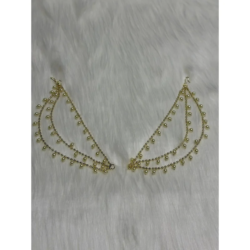এই Pearl Kantanaটি একটি এলিগেন্ট ও ট্র্যাডিশনাল Bridal Ear Chain Jewellery, যা কানের সাথে চুলে সুন্দরভাবে বসে পুরো লুককে করে তোলে আরও গ্রেসফুল।