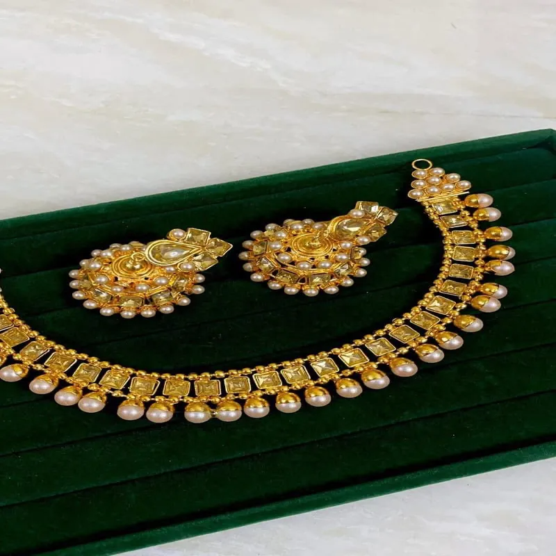 এই Gold Polished Stone Neckpiece Set একটি ট্র্যাডিশনাল ও এলিগেন্ট জুয়েলারি, যা একই প্রোডাক্টের দুইটি ভিন্ন ডিজাইন ভ্যারিয়েন্টে পাওয়া যাচ্ছে। উভয় ডিজাইনেই রয়েছে প্রিমিয়াম Gold Polish Finish, স্কয়ার ও রাউন্ড কাট Stone Work, এবং ঝুলন্ত Pearl Drop Detailing, যা গহনাটিকে দিয়েছে একটি রিচ ও গ্রেসফুল লুক।