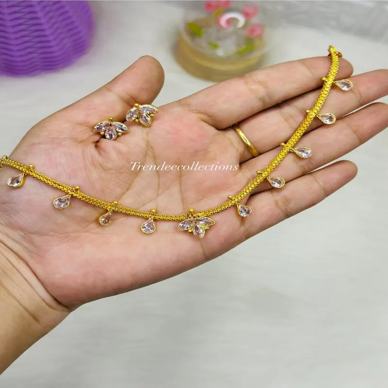 এই Simple Gold Polished Stone Neckpiece Set তাদের জন্য, যারা হালকা কিন্তু এলিগেন্ট জুয়েলারি পছন্দ করেন। স্লিম গোল্ড পলিশ চেইনের সাথে ছোট ছোট Tear Drop Stone Detailing এই নেকপিসটিকে দিয়েছে একটি সফট ও গ্রেসফুল লুক।